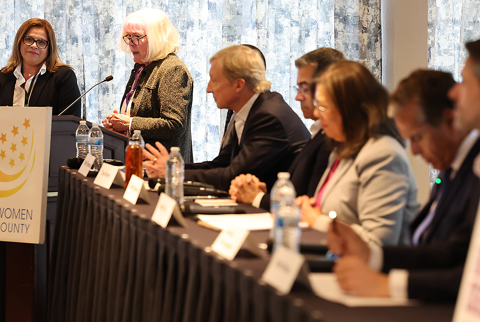 All arrived at the invitation of Democratic Women of Monterey County, Democratic Women’s Club of Santa Cruz County and the San Benito Democratic Central Committee, which came together to host the forum inside the ballroom of the Hilton Garden Inn that attracted an audience of more than 200 people.
