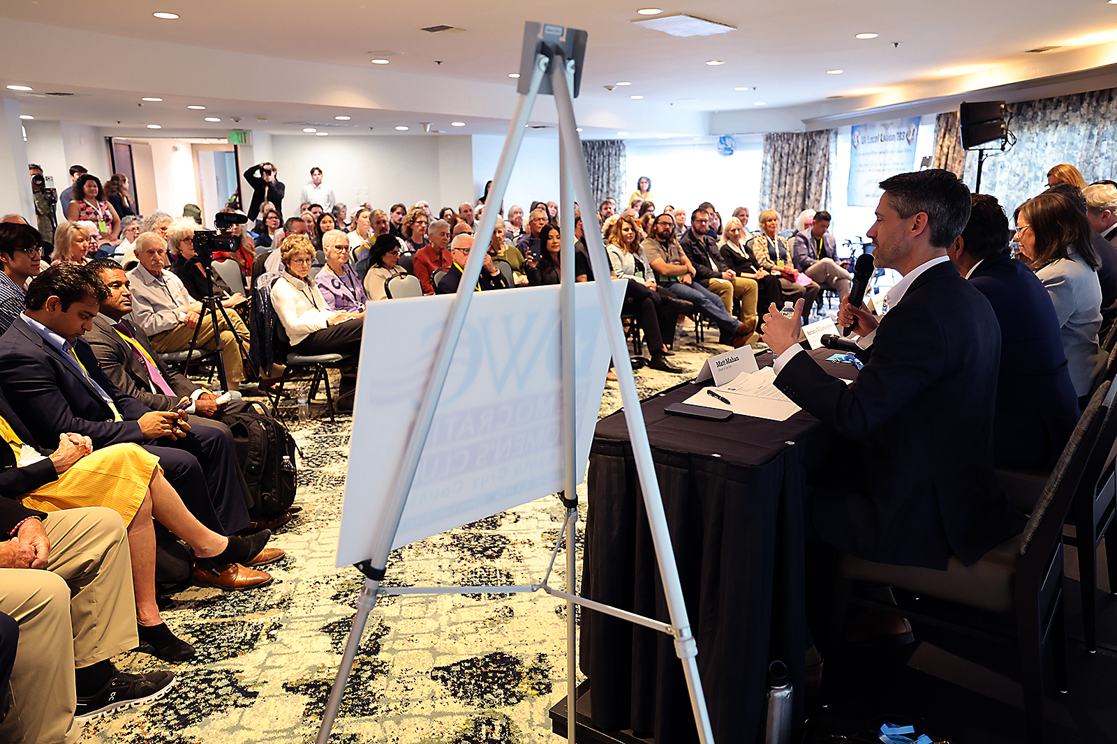 High-recognition candidates Rep. Eric Swalwell and former Rep. Katie Porter could not attend due to scheduling conflicts.