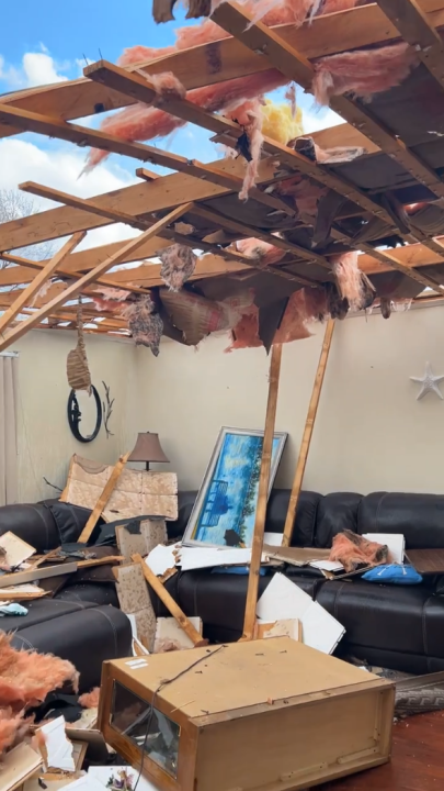 “My mom got down on top of both of us and my dad was trying to get the mattress on top of us,” Day said. “It didn’t sound like a train, it didn’t sound like a whistle, it sounded like loud wind destruction and it was tearing everything apart.”