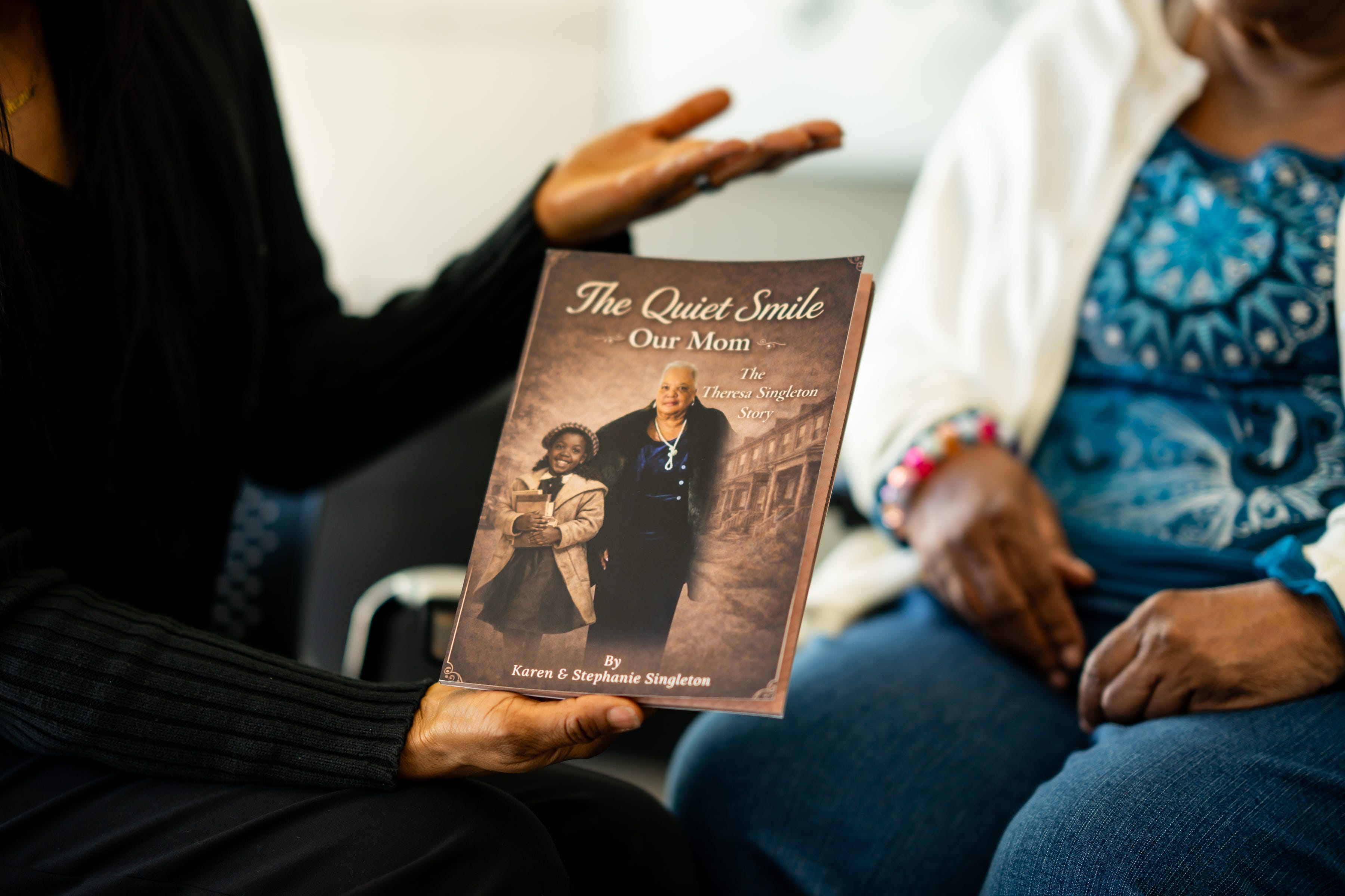 The book, called “The Quiet Smile: Our Mom, The Theresa Singleton Story," is now one of Theresa’s most prized possessions — she keeps the book in her walker and shows it off to all her friends. She said when she saw it for the first time, she was surprised and happy.